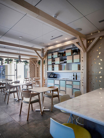 烤肉的特色就是具有烟火气,半开放式的餐厅模式,让路过的人驻足的时候会忍不住被这烟火气所吸引,而产生进去饱餐一顿的想法。而在灯光点缀下,质朴的大理石瓷砖,肌理的纹路,成为了重要的气氛制造者,让人在进入空间的刹那,便能迅速感知到设计试图营造的质感与温暖并重的氛围。