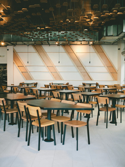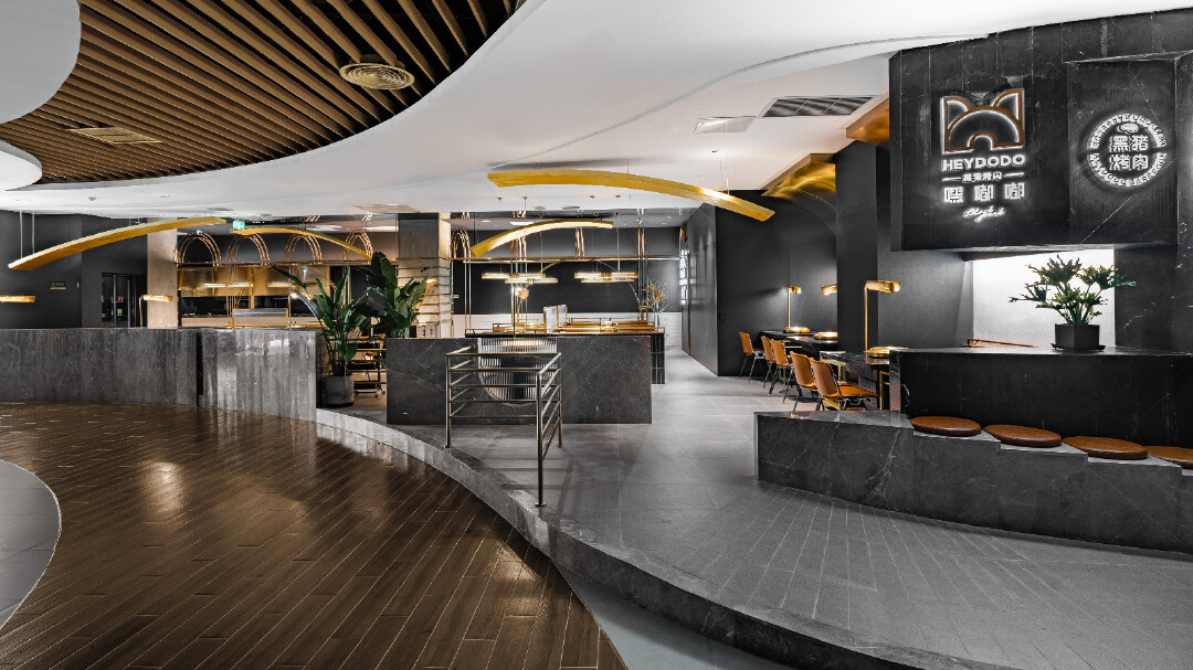 嘿嘟嘟整个以黑白金为主色调进行设计,一眼望去就是低调的奢华,大量使用木色、棕色的皮革作为空间对比色,给人的视野相继换上沉稳、朴实的色彩,还有铝通材质的装饰让餐厅的工业风更加立体。