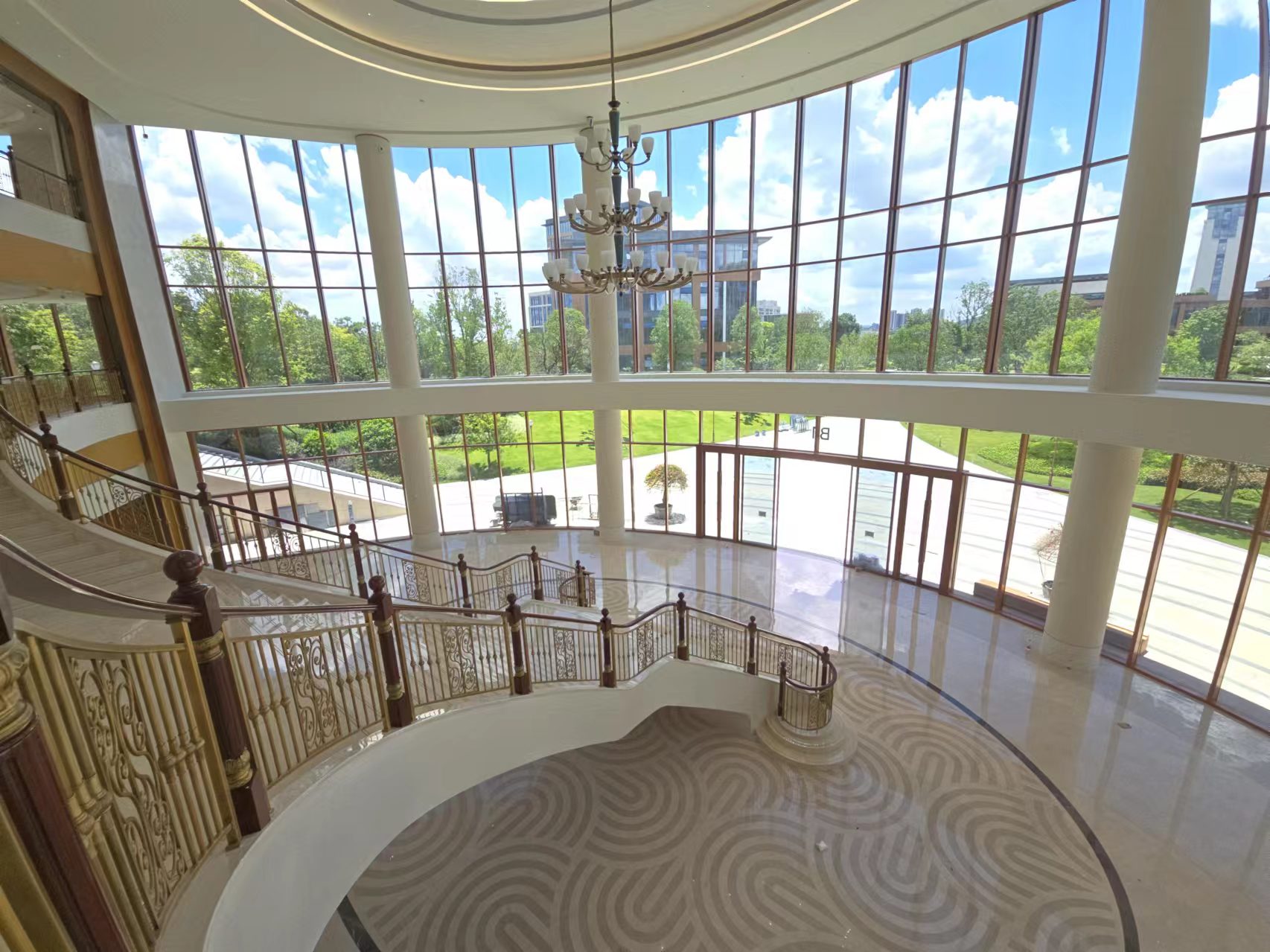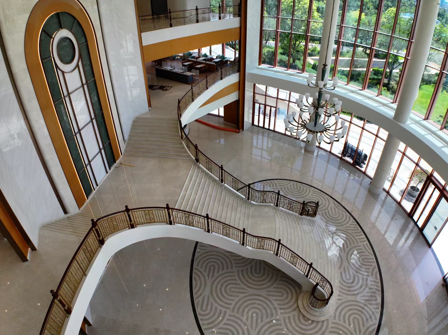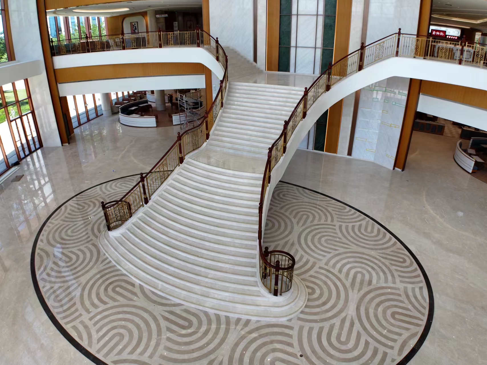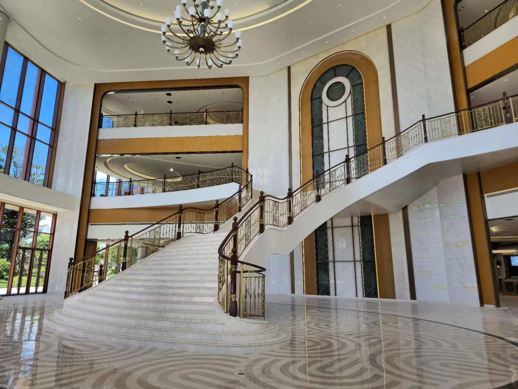 一款大型钢结构楼梯,高端大气,采用金属雕花工艺栏杆