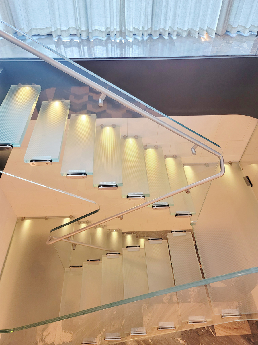 高端全玻璃楼梯定制,高难度悬浮楼梯挑战